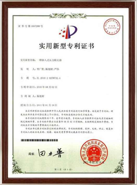 實(shí)用新型專(zhuān)利證書(shū)