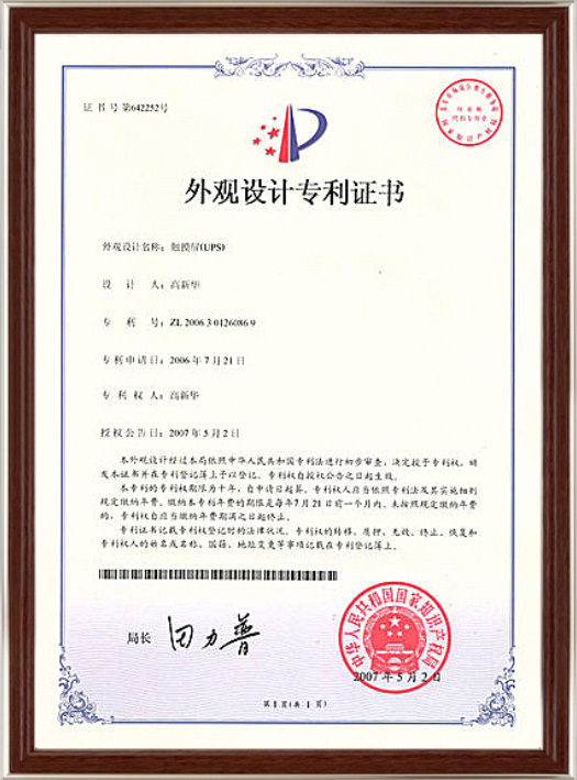 外觀設(shè)計(jì)專(zhuān)利證書(shū)